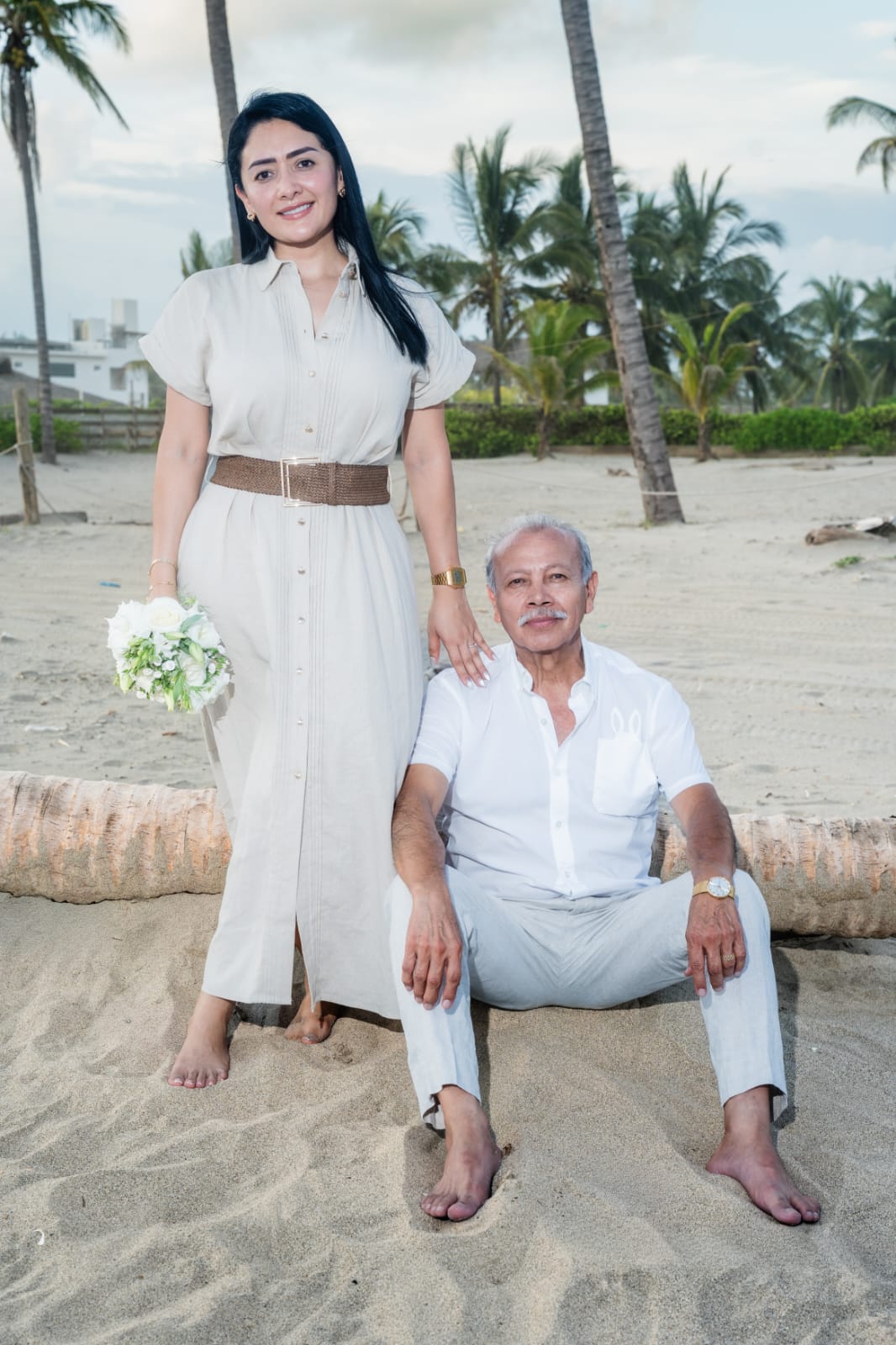 Guayabera o camisa de lino blanca, pantalón caqui,